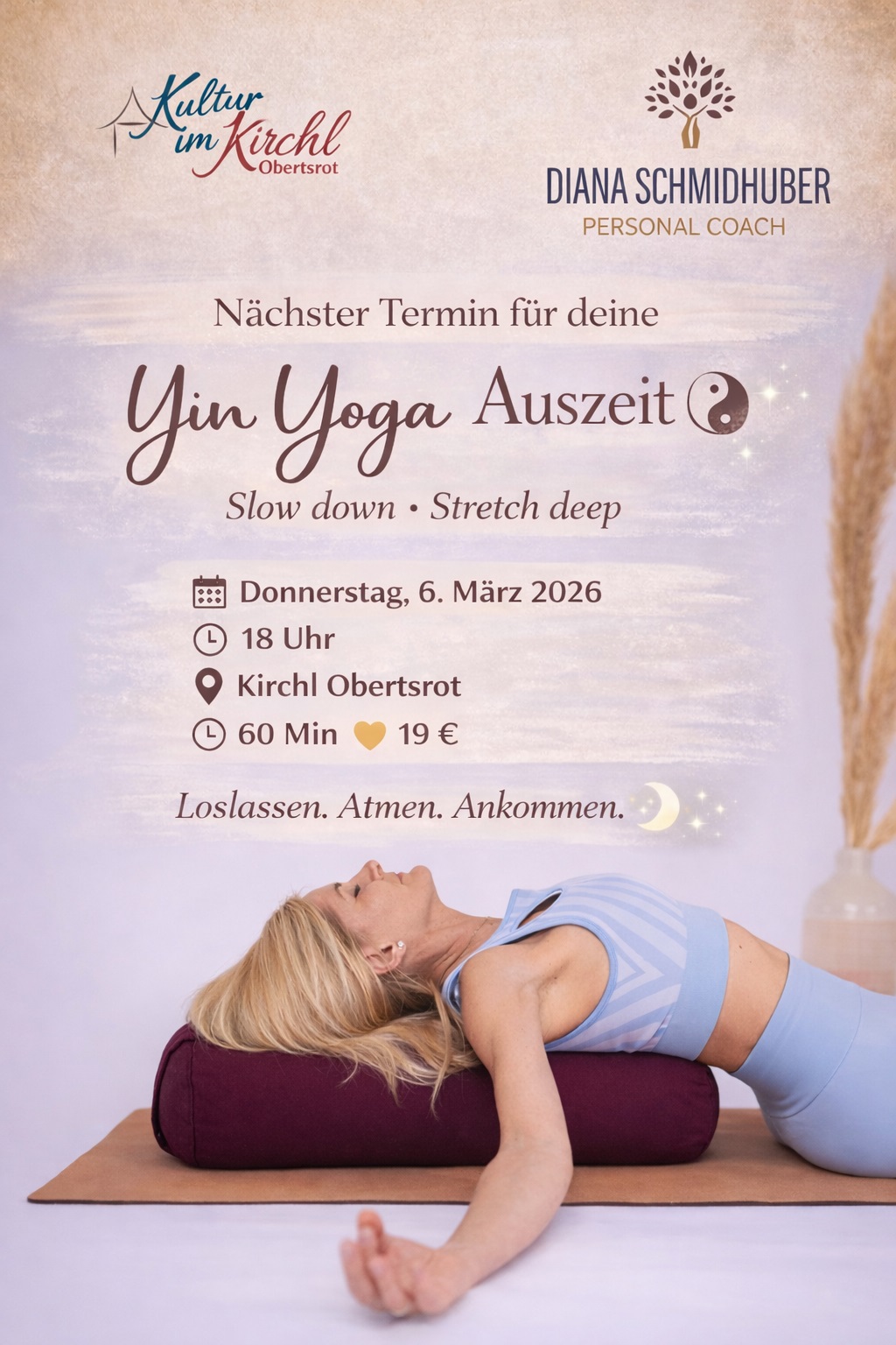 In 60 Minuten tauchen wir in ruhige Haltungen ein, geben deinem Kรถrper Zeit zum Loslassen und laden dein Nervensystem ein, wieder zu sinken, zu atmen, zu spรผren.